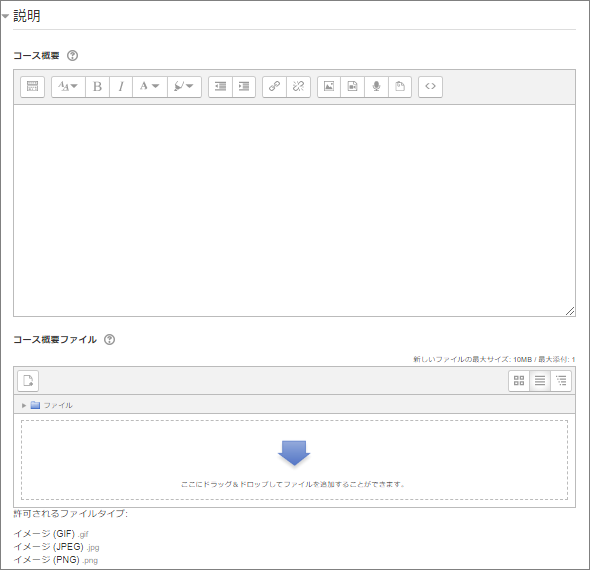 ここでは、コースにアップロードできる最大ファイルサイズを設定します。